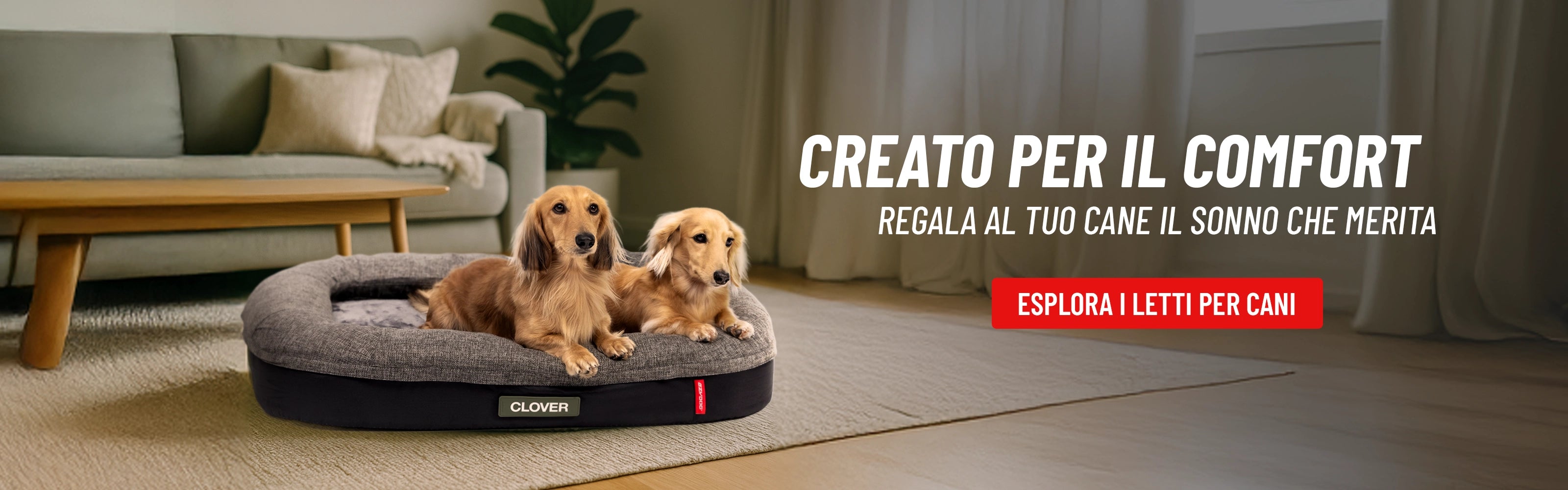 Le nostre cucce sono disponibili in diverse misure per adattarsi a tutte le razze, dai piccoli compagni ai cani di grossa taglia. In ogni pagina del prodotto sono riportate le misure esatte per aiutarvi a scegliere la taglia giusta.